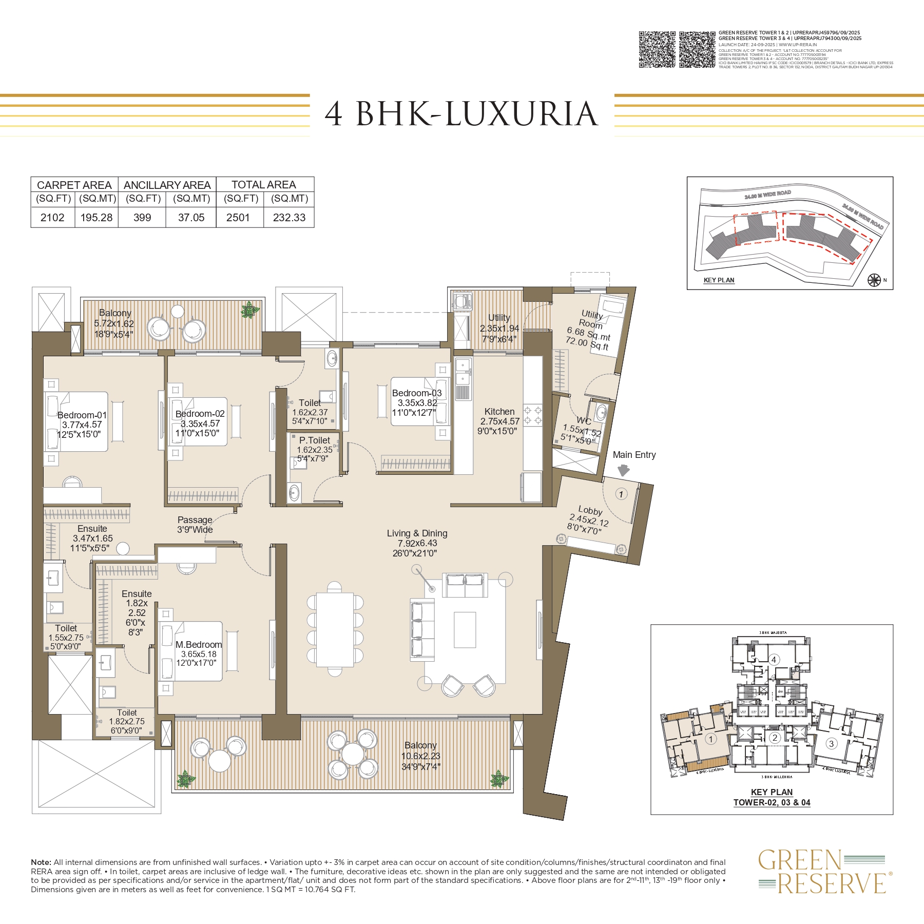 L&T Green Reserve at Sector 128, Noida is a premium residential development spread across 6.1 acres, featuring 4 iconic towers with golf course–facing apartments. Designed by renowned architect Hafeez Contractor, the project offers expansive residences with world-class planning and aesthetics. A key highlight is the 65,000 sq.ft. Grand Clubhouse, packed with lifestyle amenities for leisure, fitness, and recreation. Overlooking the JP Golf Course, the project seamlessly blends luxury living with scenic green views, setting a new benchmark in Noida’s luxury real estate landscape.